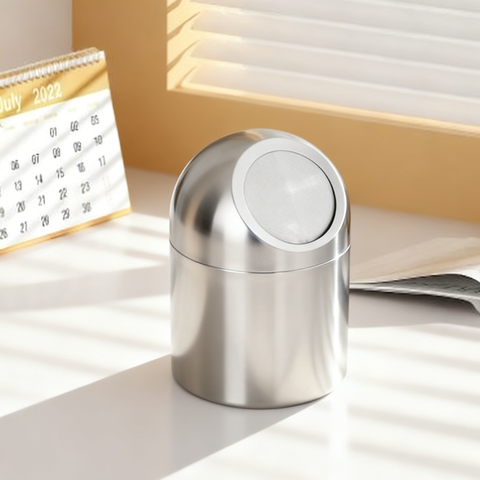 Countertop phòng ngủ mini máy tính để bàn bin thép không gỉ Mini Thùng Rác Văn phòng bàn Thùng rác có thể với Swing Nắp
