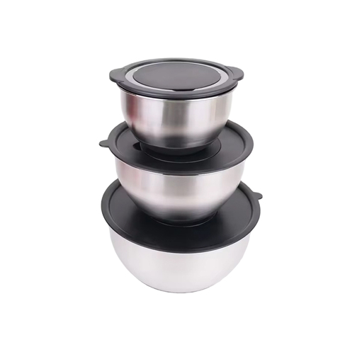 ชุดชามผสมสลัดผลไม้พร้อมฝาปิดสำหรับนวดแป้งทำจากสแตนเลสทนทานใช้กับเตาอบ