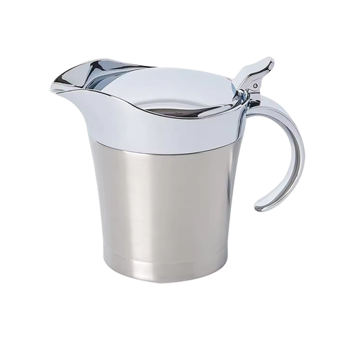 ซอสเหยือกน้ำเกรวี่โลหะพร้อมฝาปิดสำหรับใช้ในครัว500ปลอดภัยจากเตาอบ/น้ำเกรวี่ปราศจากน้ำหยดขนาด750มล.