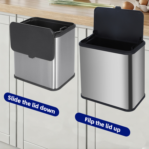 ถังขยะในครัวแบบแขวนติดผนังพร้อมฝาปิดถังขยะโลหะสแตนเลสสำหรับห้องครัว